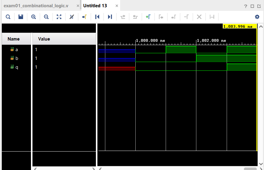 // and_gate 모듈 정의: 입력 a와 b의 논리 AND 결과를 출력 q에 저장