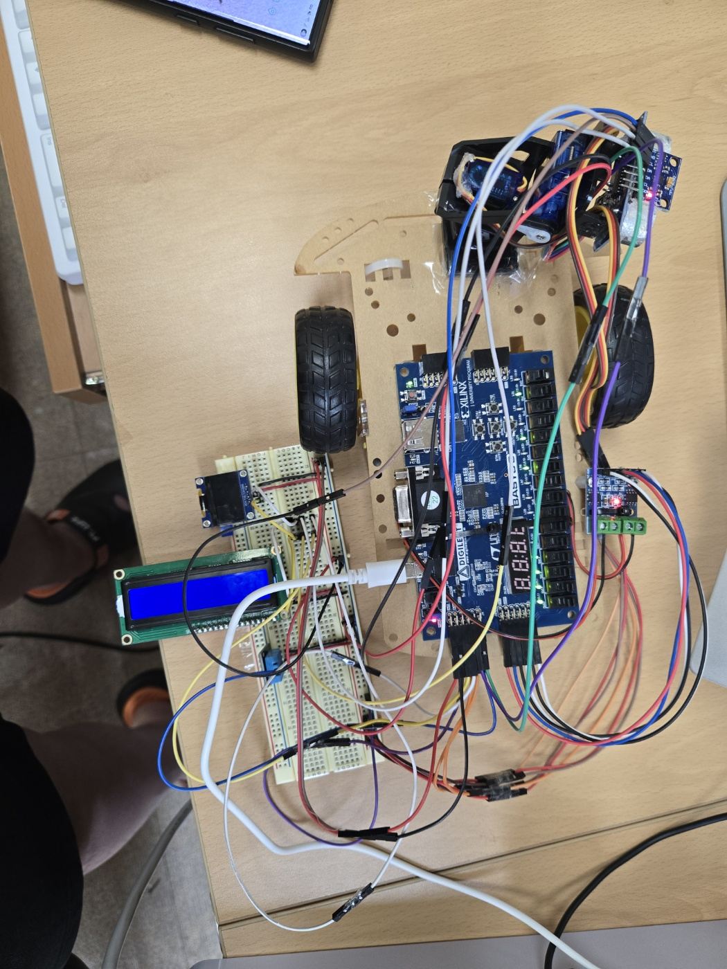 - 원하는 각도는 스위치를 통해 선택되며, FND에는 현재 서보 각도가 10° 단위로 표시됩니다.
