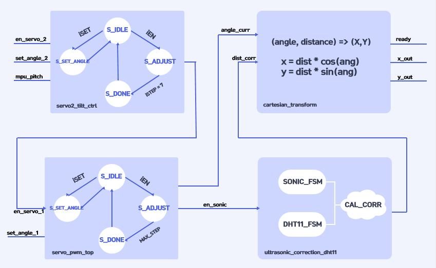 - Verilog HDL: Custom MyIP (FSM, Cartesian Transform, PWM, etc.)